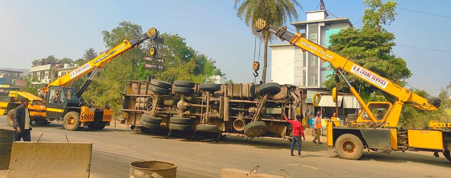 पुणे बेंगलोर राष्ट्रीय महामार्गावर टोप येथे काजूचे टरफल घेवून पुण्याकडे चाललेला ट्रक चालकाचे नियंत्रण सुटल्याने पहाटे ४ वाजण्यासुमार पल्टी झाला . या अपघातात कोणती जीवित हानी झाली नाही पण वहातुक कोंडी होऊन लांबचलाब रांगा लागल्या होत्या . ट्रक सरळ करण्यासाठी दोन क्रेन बोलावण्यात आल्या. अधिक माहिती अशी की कागल तालुक्यातील हमिदवाड येथील फुड फॅक्टरीतून काजूचे टरफल घेवून पुणे चाकणकडे निघालेला ट्रक आज पहाटे ४ वाजण्यासुमार टोप येथे आला असता चालकाचा गाडीवरील नियंत्रण सुटल्याने ट्रक ओढ्यावरील कटड्याला धडकून ट्रक थोड्या अंतरावर जावून पल्टी झाला . या अपघाताची माहिती मिळताच शिरोली पोलिस व हायवे पोलिस घटनास्थळी धाव घेवून परिस्थीतीची पहाणी करून ट्रक दोन क्रेनच्या सहाय्याने बाजूला करण्याचा प्रयत्न करत असताना ट्रक ओरलोड असल्याने दोन्ही क्रेनचे वायरूप तुटले त्यामुळे ट्रक सरळ करण्यास वेळ लागत असल्यामुळे वाहतुक कोंडी निर्माण झाली होती वाहतूक नियंत्रित आणण्यासाठी शिरोली पोलिस व हायवे पोलिस शर्यतीचे प्रयत्न करून वाहतुक सुरळीत चालू केली