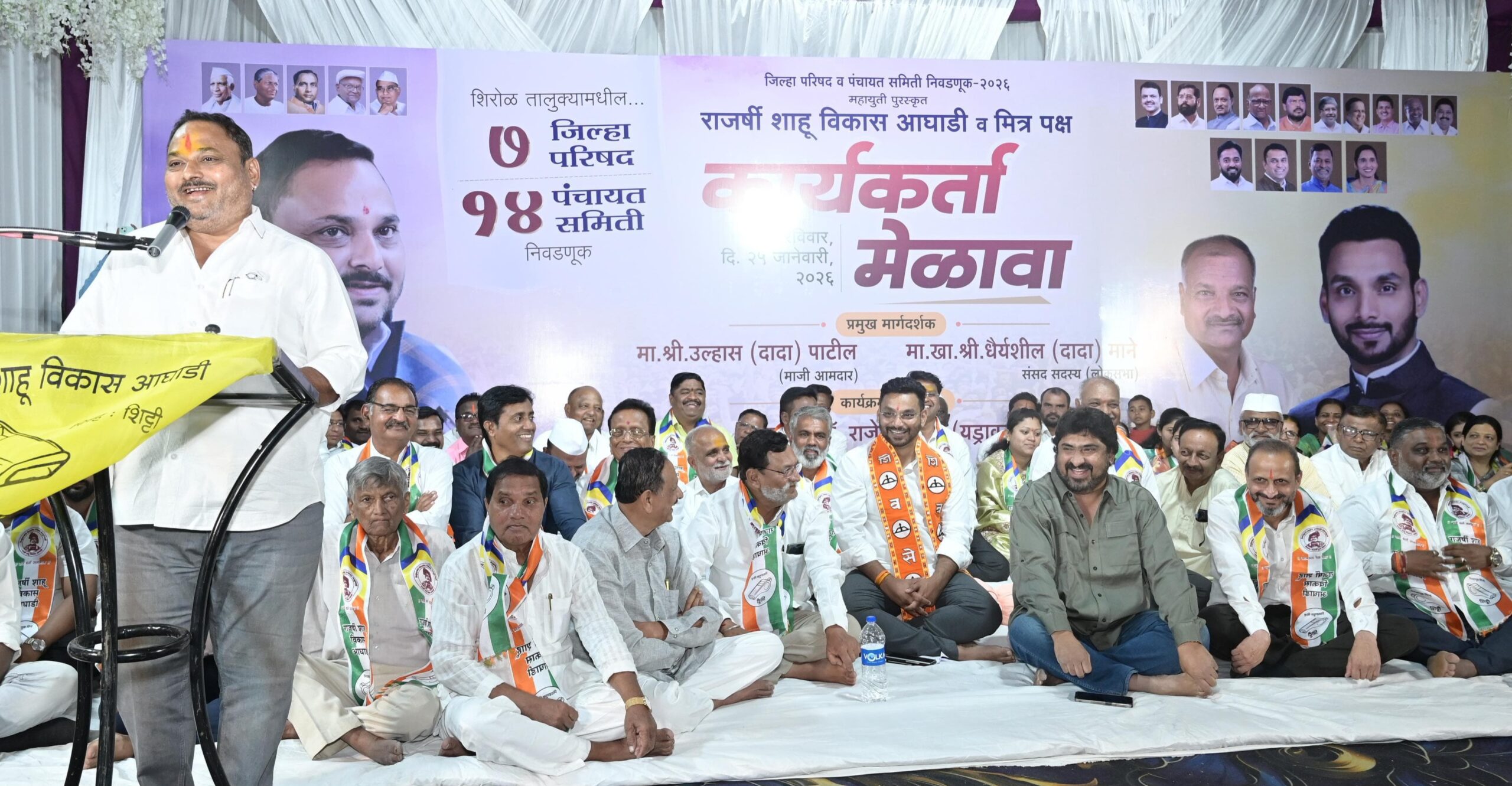 शिरोळ तालुक्याचा सर्वांगीण आणि राजकारणविरहित विकास हेच राजर्षी शाहू विकास आघाडीचे प्रमुख उद्दिष्ट असून, सर्वसामान्यांच्या हाताला काम मिळावे व त्यांचे आर्थिक स्थैर्य वाढावे यासाठी आम्ही कटिबद्ध आहोत, शिरोळ तालुक्यात आतापर्यंत सुमारे २ हजार कोटी रुपयांची विकासकामे करण्यात आली असून, विरोधकांकडे टीकेशिवाय कोणताही ठोस विकासात्मक मुद्दा उरलेला नाही.ग्रामपंचायतीपासून जिल्हा परिषद, पंचायत समिती, आमदार व खासदार हे सर्व एकाच विचाराचे असतील तरच तालुक्याच्या विकासाला खरी गती मिळते. स्व. दत्ताजीराव कदम यांच्या वारशाचा उल्लेख करत, केवळ पुतळ्याला हार घालणे म्हणजे आदरांजली नव्हे, तर त्यांच्या वारसांना राजकीय प्रवाहात सामावून घेणे ही खरी आदरांजली आहे. त्यामुळे सर्वांना सामावून घेऊन आम्ही राजर्षी शाहू विकास आघाडीच्या माध्यमातून जिल्हा परिषद व पंचायत समितीच्या सर्वच जागा मोठ्या मताधिक्याने निवडून आणू,असा विश्वास आमदार राजेंद्र पाटील यड्रावकर यांनी व्यक्त केला.शिरोळ तालुक्यातील ७ जिल्हा परिषद व १४ पंचायत समिती निवडणुकांच्या पार्श्वभूमीवर राजर्षी शाहू विकास आघाडी व मित्र पक्षांचा संयुक्त कार्यकर्ता मेळाव्यात आमदार राजेंद्र पाटील यड्रावकर बोलत होते.आमदार यड्रावकर पुढे म्हणाले, कुरुंदवाड आणि जयसिंगपूर नगरपालिकेत राजर्षी शाहू विकास आघाडीची सत्ता स्थापन झाल्यानंतर दोन्ही नगरपालिकांसाठी २३ कोटी ५० लाख रुपयांचा विकास निधी मंजूर झाला असून, विकासाभिमुख आणि समान विचारांची माणसे सत्तेवर असतील तरच शिरोळ तालुक्याचा सर्वांगीण विकास वेगाने होऊ शकतो. शिरोळ तालुक्यात आतापर्यंत सुमारे २ हजार कोटी रुपयांची विविध विकासकामे करण्यात आली असून, यामध्ये पायाभूत सुविधा, पाणीपुरवठा, रस्ते, सहकार व औद्योगिक क्षेत्रातील कामांचा समावेश आहे. मात्र या विकासकामांवर चर्चा करण्याऐवजी विरोधकांकडे केवळ टीका करण्याव्यतिरिक्त कोणताही ठोस मुद्दा उरलेला नाही,असा आरोप करण्यात आला.राजकारणापेक्षा विकासाला प्राधान्य देत शिरोळ तालुक्याची सेवा करण्याचा निर्धार राजर्षी शाहू विकास आघाडीने केला आहे. तालुक्यातील सर्वसामान्यांचे आर्थिक स्थैर्य वाढवणे, रोजगारनिर्मिती करणे आणि युवकांना कामाच्या संधी उपलब्ध करून देणे हे आघाडीचे प्रमुख उद्दिष्ट स्पष्ट केले. यासाठी तालुक्यातील सर्व समविचारी पक्ष व कार्यकर्ते एकत्र येऊन काम करणार असल्याचे सांगण्यात आले.केवळ आमदार किंवा खासदार निवडून दिल्याने विकास होत नाही, तर ग्रामपंचायतीपासून जिल्हा परिषद, पंचायत समिती, आमदार आणि खासदार हे सर्व एकाच विचाराचे आणि विकासाभिमुख असतील तरच तालुक्याच्या विकासाला खरी गती मिळते, असे मत व