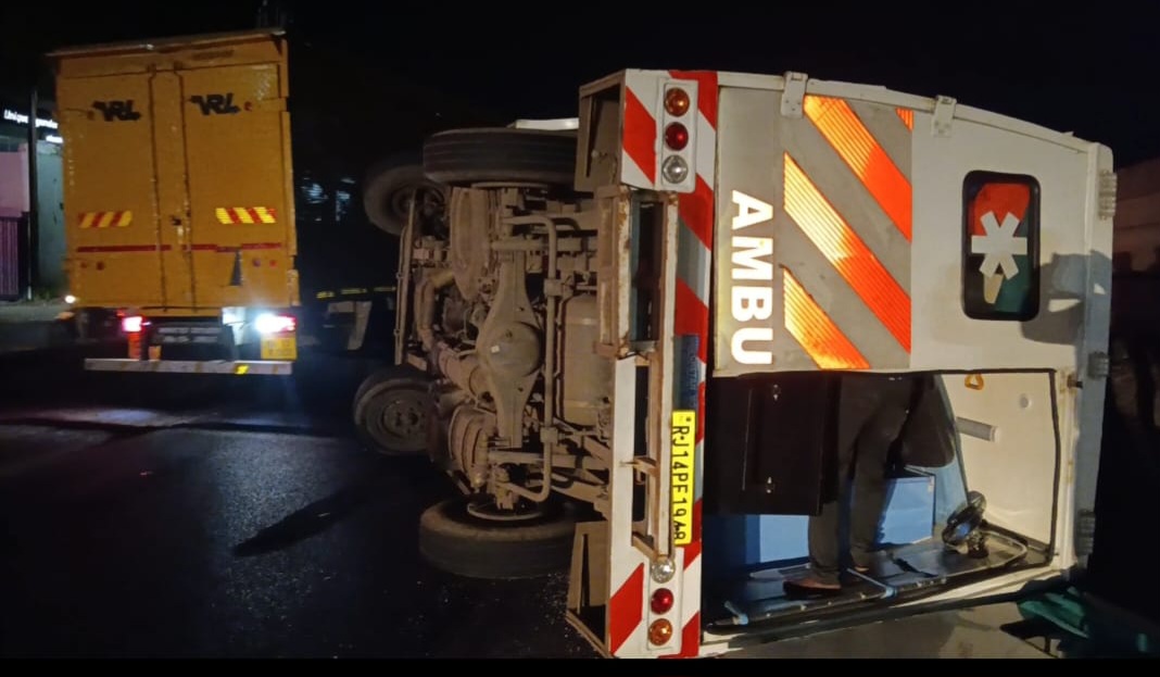 पुणे-बेंगलोर राष्ट्रीय महामार्गावर दुचाकीस्वाराला वाचवण्याच्या प्रयत्नात चालकाचे नियंत्रण सुटल्याने रुग्णवाहिका हायवेवर पल्टी झाली या अपघातात चालक व अन्य मदतनीस कर्मचारी किरकोळ जखमी झाले असून, सुदैवाने मोठी जीवितहानी टळली आहे. हा अपघात शिरोली पुलाची येथील युनिक ऑटोमोबाईल जवळ रात्री ९ वाजण्यासुमार घडला यामुळे वाहतुक कोंडी निर्माण झाली होती.मिळालेल्या माहितीनुसार, ही रुग्णवाहिका टोप येथे हायवेवर कारचा अपघात झाल्याचा काॅल आला असल्याने ते टोपकडे जात होती अपघातातील रुग्णाला तातडीच्या उपचारासाठी रुग्णालयात घेऊन जाण्यासाठी ही रूग्णवाहिका. महामार्गावरून वेगाने जात असताना अचानक एक दुचाकीस्वार रुग्णवाहिकेच्या समोर आला. त्या दुचाकीस्वाराला वाचवण्यासाठी चालकाने प्रसंगावधान राखत रुग्णवाहिका वळवली. मात्र, वेग अधिक असल्याने रुग्णवाहिकेचे टायर घसरून रुग्णवाहिकेचे संतुलन बिघडले. रुग्णवाहिका रस्त्यावर पल्टी झाली .अपघात होताच महामार्गावरील प्रवासी आणि परिसरातील नागरिकांनी तत्काळ घटनास्थळी धाव घेतली. रुग्णवाहिकेतील चालक प्रविण पाटील, व डाॅक्टर राहूल पाटील सुरक्षित बाहेर काढले .या घटनेची माहिती मिळताच स्थानिक शिरोली पोलिसांनी घटनास्थळी पोहोचून महामार्गावरील वाहतूक सेवा रस्त्यावरून वळवळत रुग्णवाहिका क्रेनच्या साहाय्याने सरळ करत रस्त्याच्या बाजूला उभी केली त्यानंतर नंतर काही वेळात वाहतूक सुरळीत करण्यात आली.महामार्गावर वाढत्या वाहतुकीमुळे आणि काही वाहन चालकांच्या बेदरकापणामुळे अशा अपघातांच्या घटना वाढत चालले आहेत विशेषता दुचाकी स्वरांनी अचानक लेन बदलले किंवा इंडिकेटर न देता वळण घेणे हे अपघातास कारणीभूत ठरत आहे वाहन चालकांनी सुरक्षित अंतर ठेवणे आणि वाहतूक नियमांचे काटेकोर पालन करणे गरजेचे आहे या अपघातामुळे पुन्हा एकदा महामार्गावरील सुरक्षिततेचा प्रश्न एरणीवर आला असून संबंधित यंत्रणांनी तातडीने उपाययोजना कराव्यात अशी मागणी नागरिकांकडून होत आहे