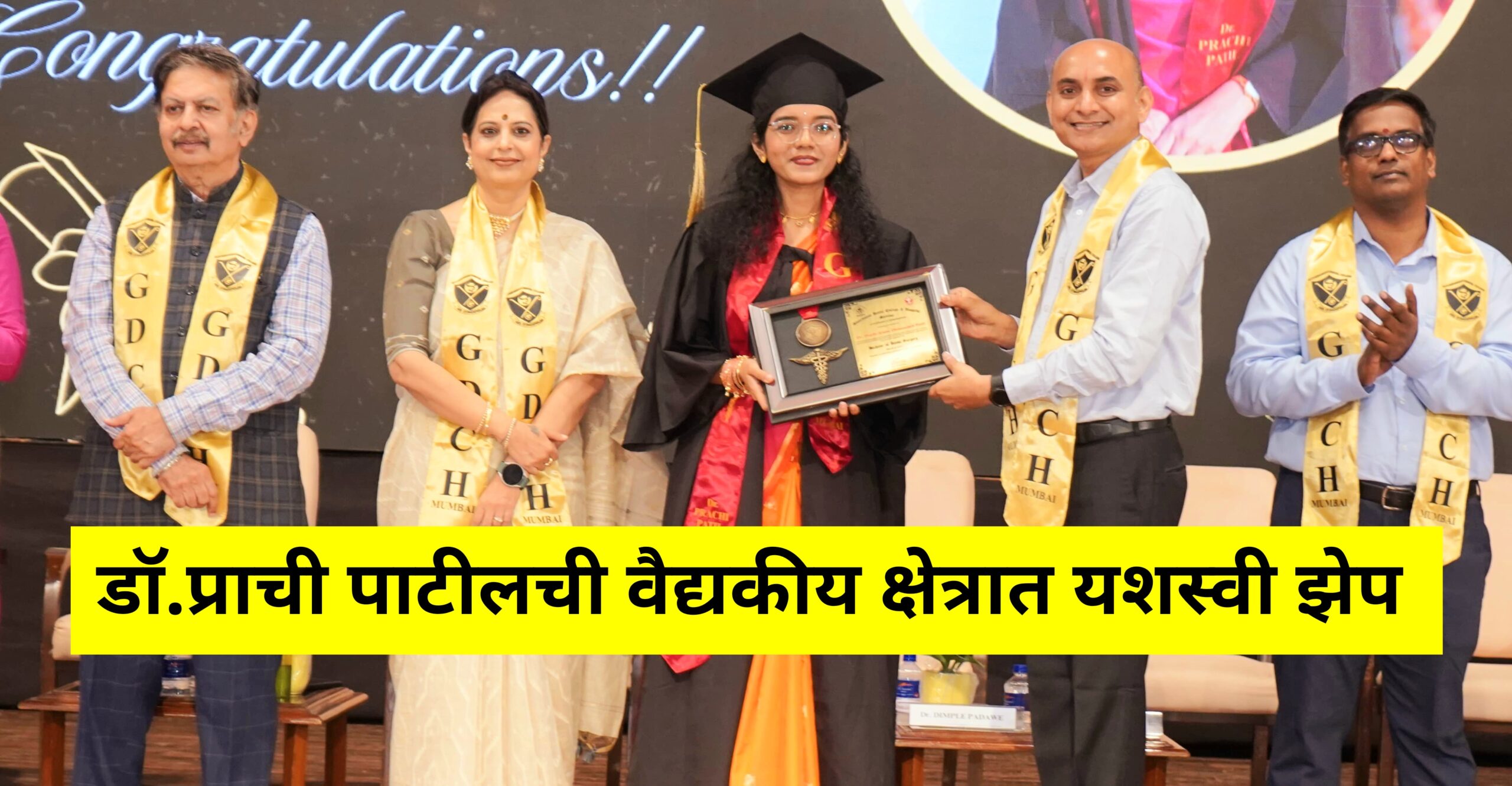 शिरोळ येथील श्री शिवप्रतिष्ठान हिंदुस्थानचे सदस्य चिमासाहेब उर्फ सी.जी.पाटील यांची कन्या व प्रफुल उर्फ डपलू पाटील यांची पुतणी डॉक्टर कुमारी प्राची अरुणा चिमासाहेब पाटील हिने वैद्यकीय क्षेत्रात उल्लेखनीय यश संपादन करत दंतचिकित्सक (BDS) ही पदवी मुंबई येथील गव्हर्नमेंट डेंटल कॉलेज (GDC) मधून यशस्वीरित्या पूर्ण केली आहे.तिच्या या यशाबद्दल सर्वत्र तिचे कौतुक होत असून विविध स्तरातून अभिनंदनाचा वर्षाव होत आहे.प्राची पाटील ही सर्वसामान्य कुटुंबातून पुढे येत कठोर परिश्रम,चिकाटी आणि सातत्यपूर्ण अभ्यासाच्या जोरावर वैद्यकीय क्षेत्रात उल्लेखनीय यश मिळविण्यात यशस्वी ठरली आहे.विद्यार्थीदशेत तिने अत्यंत जिद्दीने आणि एकाग्रतेने शिक्षण पूर्ण करत दंतचिकित्सक ही पदवी संपादन केली. मुंबईसारख्या मोठ्या शहरातील प्रतिष्ठित गव्हर्नमेंट डेंटल कॉलेजमधून BDS पदवी मिळवणे ही तिच्यासाठी अभिमानाची बाब ठरली आहे.प्राचीच्या या यशामुळे तिच्या कुटुंबासह शिरोळ परिसरात आनंदाचे वातावरण निर्माण झाले आहे.तिचे वडील चिमासाहेब उर्फ सी.जी.पाटील हे सामाजिक कार्यात सक्रिय असून त्यांनी मुलीला लहानपणापासून शिक्षणासाठी प्रोत्साहन दिले. कुटुंबाच्या पाठबळामुळे आणि स्वतःच्या जिद्दीमुळे प्राचीने आपल्या ध्येयाकडे वाटचाल करत हे यश संपादन केले आहे. प्राची पाटील हिच्या या यशाबद्दल सामाजिक,राजकीय, शैक्षणिक,व्यावसायिक तसेच वैद्यकीय क्षेत्रातील मान्यवरांकडून तिचे अभिनंदन करण्यात येत आहे.अनेकांनी तिच्या पुढील उज्ज्वल भविष्यासाठी शुभेच्छा देत ती भविष्यात आपल्या ज्ञानाच्या माध्यमातून सर्वसामान्य नागरिकांची सेवा करेल, असा विश्वास व्यक्त केला आहे.सर्वसामान्य कुटुंबातील मुलींनीही मोठी स्वप्ने पाहून अथक परिश्रमांच्या बळावर यश संपादन करता येते, याचे प्रेरणादायी उदाहरण प्राची पाटील हिने घालून दिले आहे. तिच्या या यशामुळे परिसरातील विद्यार्थ्यांना आणि विशेषतः मुलींना शिक्षणाची प्रेरणा मिळत असून तिच्या कर्तृत्वाचा सर्वत्र अभिमान व्यक्त केला जात आहे.