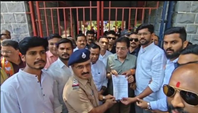 कोल्हापूर जिल्ह्यातील हातकणगले तालुक्यातील पुलाची शिरोली इथल्या लव जिहाद प्रकरणातील शाहिद समीर सनदे आणि शाहरुख हुसेन देसाई यांना हातकणंगले पोलीसांच्या हवाली करण्यात आले होते. या पार्श्वभूमीवर भाजपाचे नेते खासदार किरीट सोमय्या यांनी भाजप पदाधिकाऱ्यांच्या सह हातकणंगले पोलीस ठाण्याला भेट दिली. यावेळी अप्पर पोलीस अधीक्षक अण्णासाहेब जाधव, जयसिंगपूर चे उपविभागीय पोलीस अधिकारी अमोल ठाकूर यांच्याशी चर्चा करून या प्रकरणाची संपूर्ण माहिती जाणून घेतली. आणि तपासाबाबत योग्य त्या सूचना दिल्या. यावेळी खासदार सोमय्या यांनी पत्रकारांशी वार्तालाप केला. यावेळी बोलताना सोमय्या म्हणाले आरोपीनी दोनहून अधिक मुलींना फसवलं आहे.माफीनामा हे नाटक आहे. प्रकरणा संदर्भात उच्च अधिकाऱ्यांशी चर्चा झाली असून अजून मोबाईल, ॲप्स यांची तपासणी करायची आहे, महाराष्ट्रात एप्रिल महिन्यात हे सहावे प्रकरण लव्ह जिहाद चे आहे. सगळेच ठिकाणी आरोपी हे मुस्लिम माफीया आहेत. त्या माफी यांची टोळी आहे त्यांना प्रशिक्षण दिलं जातंय, मालेगावहून आर्थिक सपोर्ट दिला जातोय, या सर्व ठिकाणचे आरोपी हे कट्टर पंथीय धर्मांध मुस्लिम माफीयांचे काम आहे.पीडित मुली आणि त्याचा परिवार पुढे आल्यामुळे हे प्रकरण बाहेर आले आहे अशाच पद्धतीने धाडसाने पुढे येऊन तक्रारी करणे गरजेचे आहे त्यांची ओळख गुपित ठेवण्यात येतील. यासह आरोपी संदर्भात अन्य विषयावर विचारलेल्या प्रश्नांना उत्तर दिली. या वेळी आम अशोक माने, भाजपा जिल्हा अध्यक्ष विजय जाधव, जिल्हा सरचिटणीस शहाजी भोसले, हातकणंगले मंडल अध्यक्ष शितल हावळे, पेठवडगाव मंडल अध्यक्ष अमरसिंह पाटील, हातकणंगले शहर अध्यक्ष अमर इंगवले, बाळासाहेब गारे, शिरोली सरपंच प्रतिनिधी कृष्णात करपे, दीपक यादव, अर्जुन चौगुले, संदीप तानवडे,विनोद खिलारी, रावसाहेब चौगुले, संजय नंदीवाले, ,नगरसेवक रोहीत निगवे, अभि लुगडे, पंकज बुड्डे, सुदेश मोरे, दीनानाथ मोरे,रमजान मुजावर, संजय दुगंगे,प्रशांत येटाळे, अभिजित आरोडे, , संतोष कांबळे, सुभाष कुंभार, राजु इंगवले, यांच्यासह भाजपाचे पदाधिकारी उपस्थित होते.